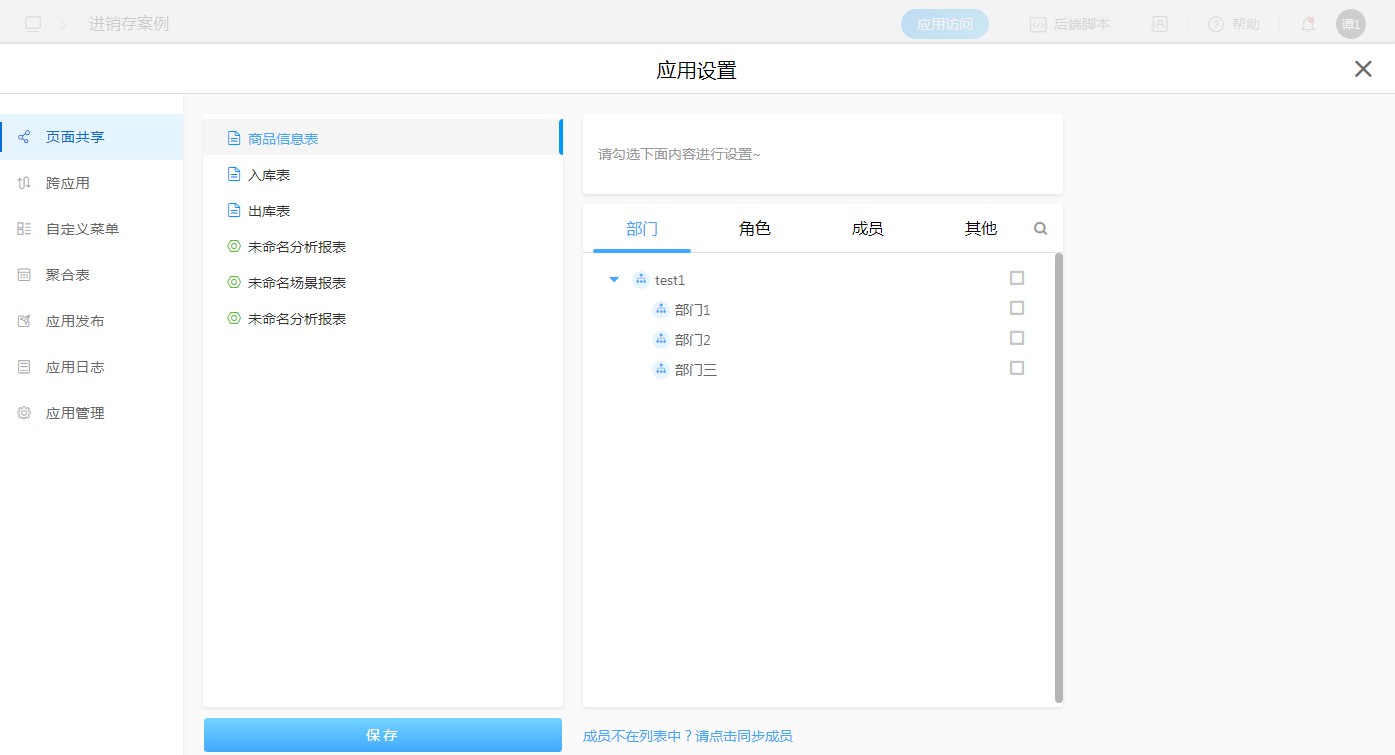 应用设置包含应用的基本操作,如:页面共享、自定义菜单(应用于移动端)、跨应用、聚合表、应用发布、应用日志、应用管理等等。