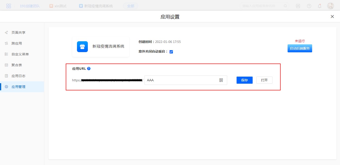 即可通过URL直接打开应用,URL可自定义设置,设置后,可分享URL,也可分享二维码。