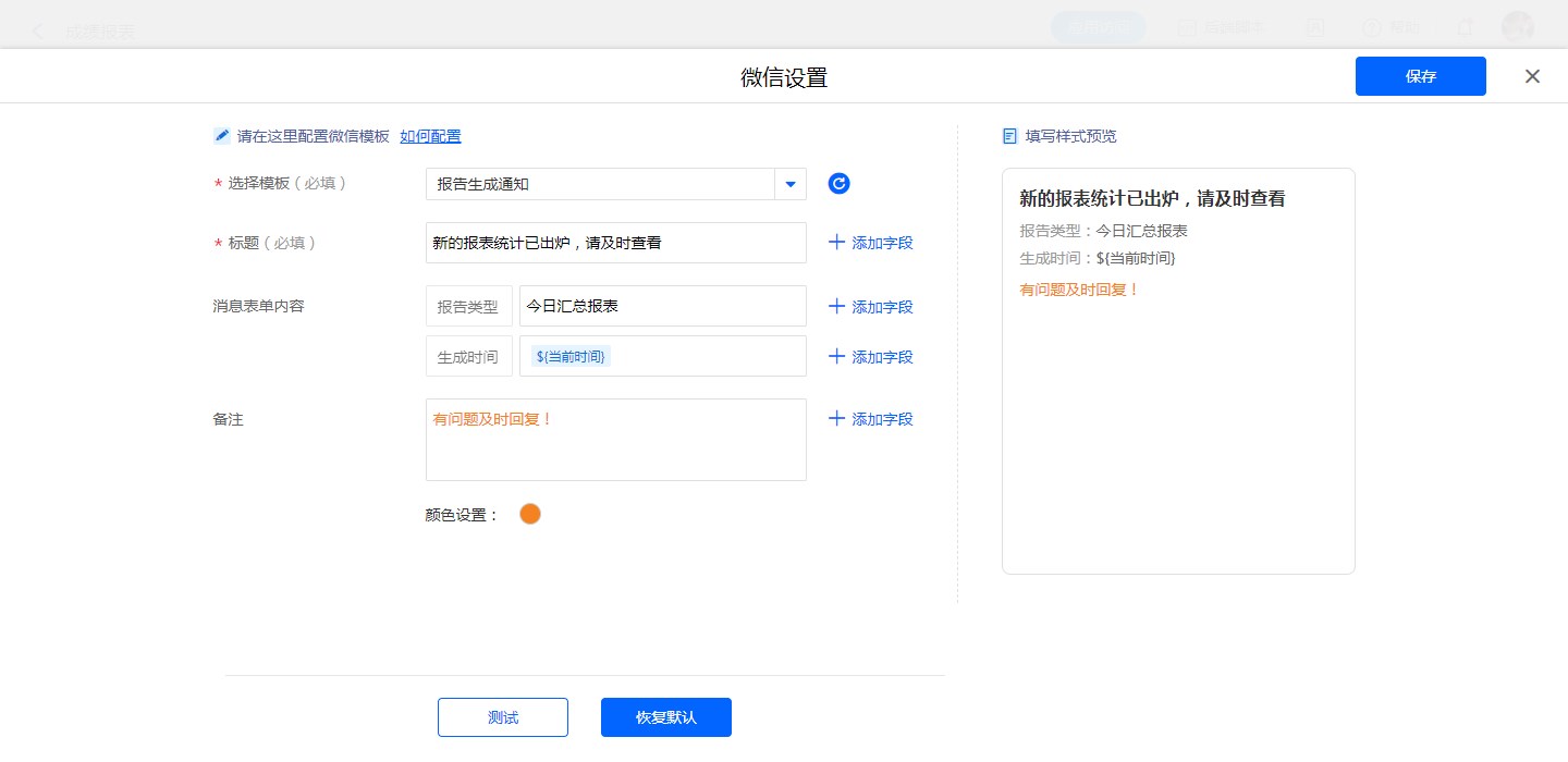 • 报表定时提醒设置微信消息模板