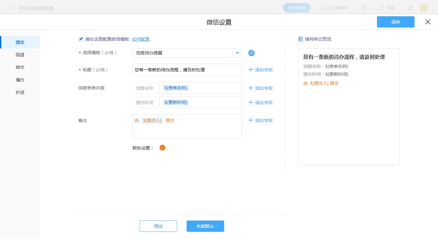 • 流程表单设置微信消息模板