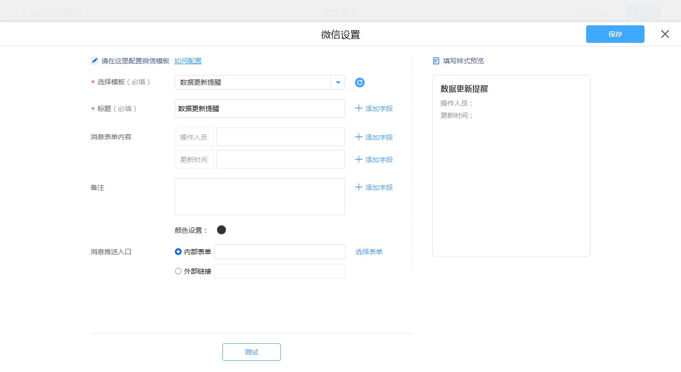 • 数据助手设置微信消息模板