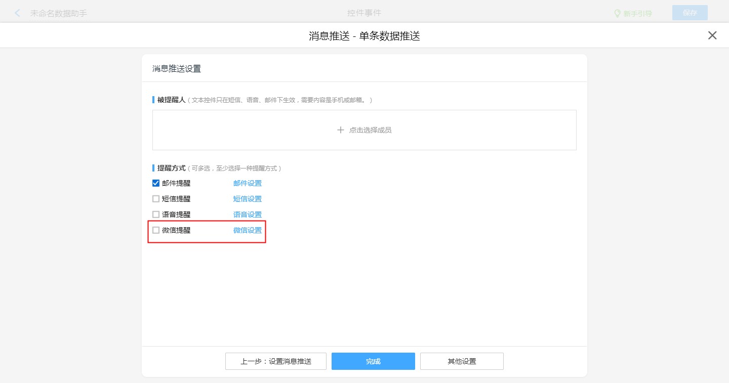 如:新建数据提醒收到微信消息