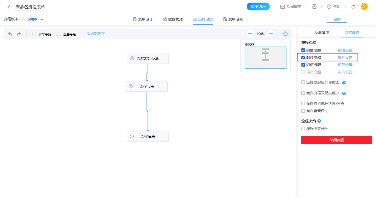 【普通表单设计】-【表单设置】-【消息推送】-【新建消息推送】-【邮件提醒,邮件设置】