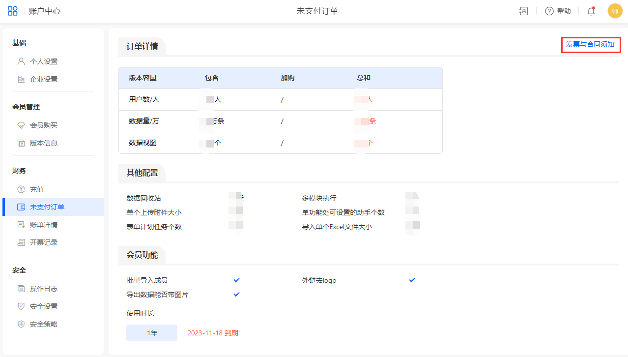 发票与合同须知为用户购买时显示,最大字数2万条。