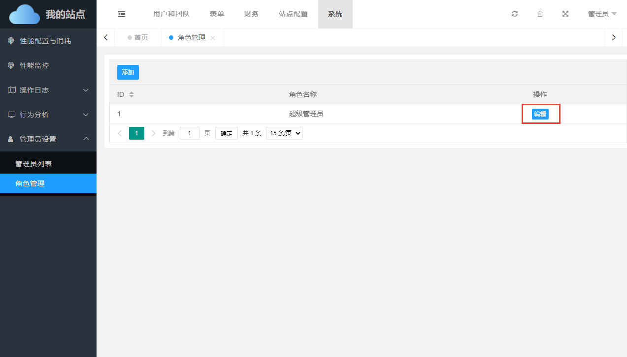 拥有添加角色权限的管理员,可以在角色管理页面添加新的角色,新添加的角色,默认是没有任何权限,需进行权限分配后,才可正常使用。