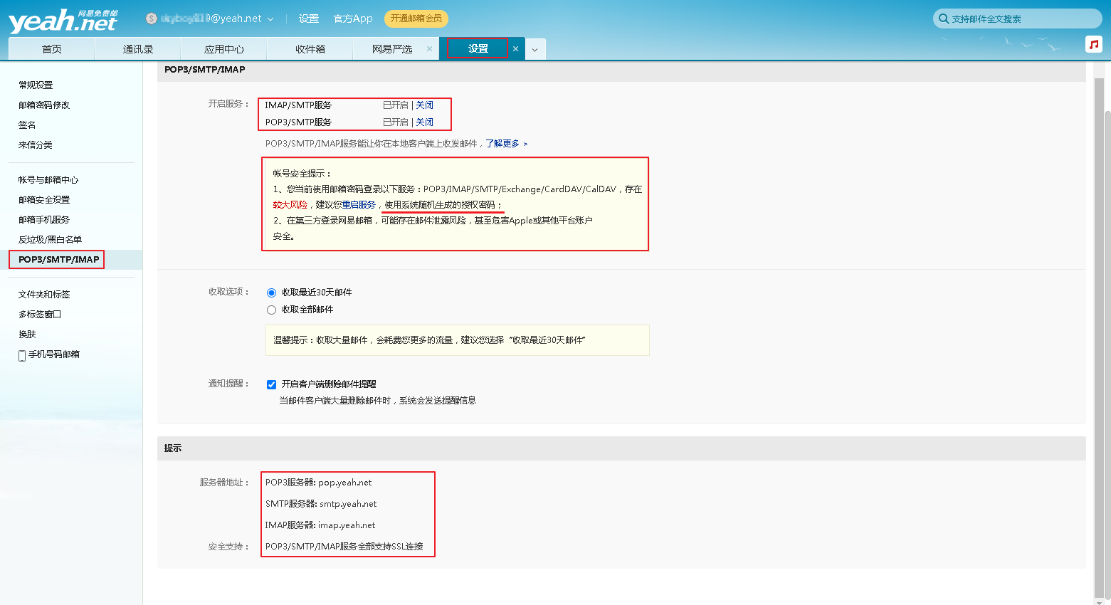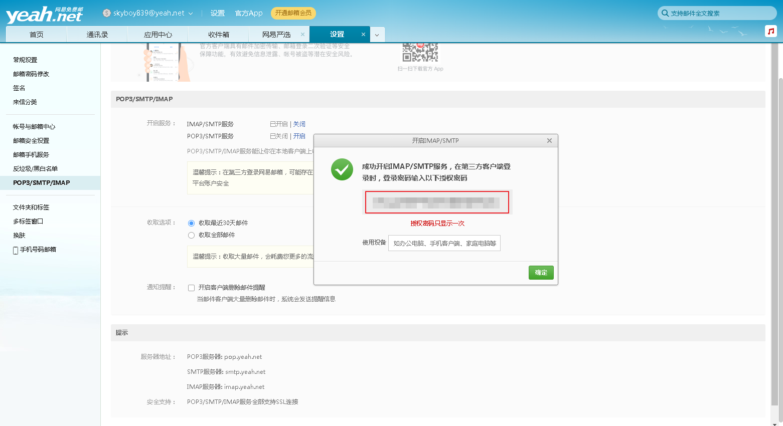 部分邮箱支持服务密码作为授权密码。这种方式相对而言更加安全。