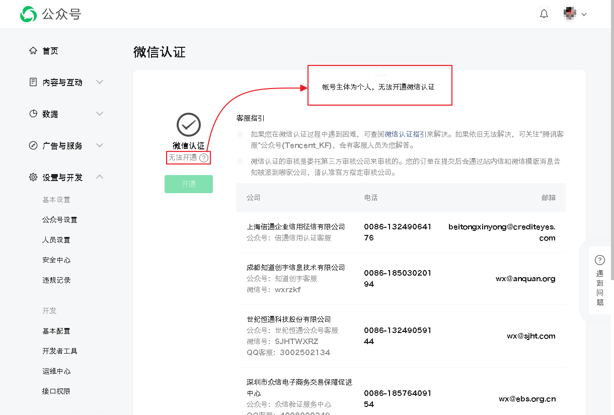 如果您的账号不符合申请条件,无法执行下一步,您可以根据页面提示及时更改公司的相关信息。