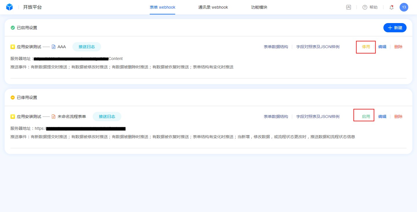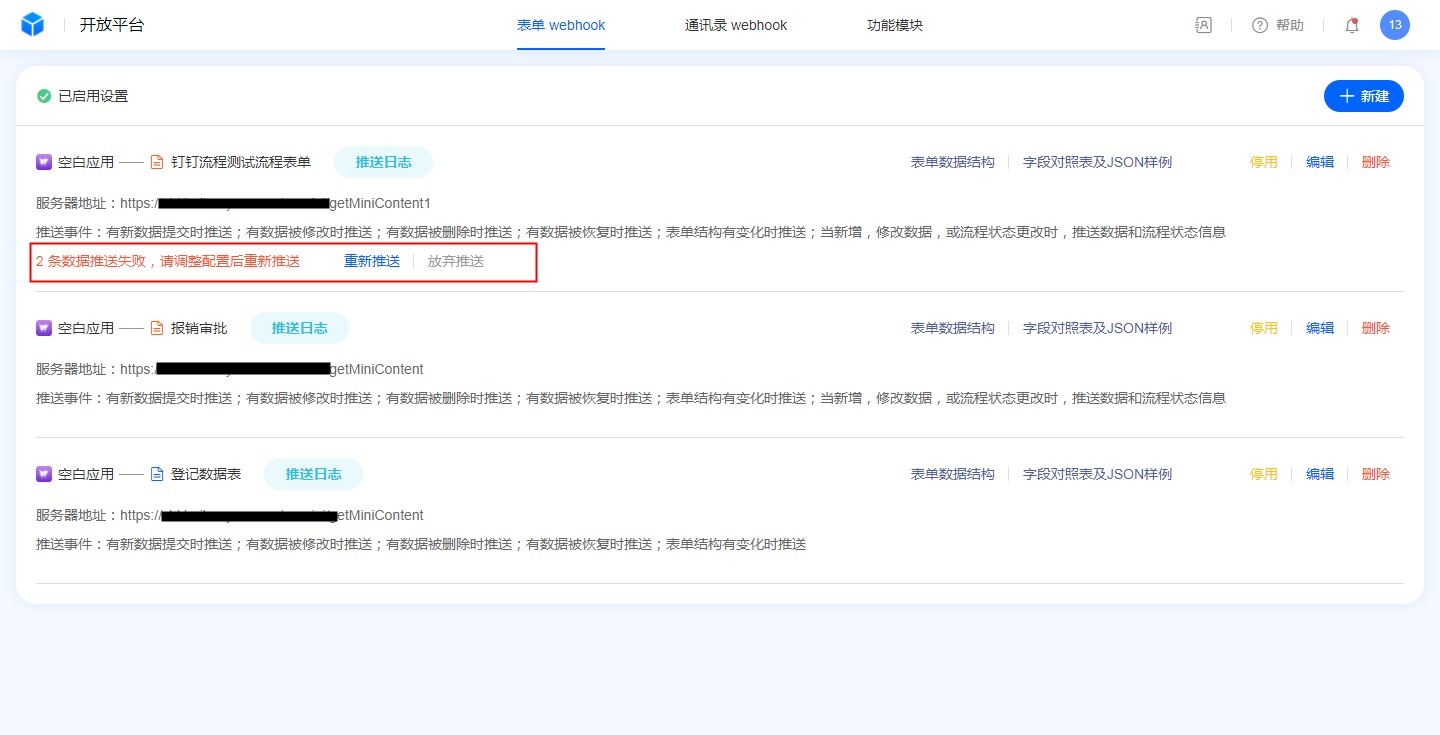 - 停用的数据重新启用后,重新计算推送失败次数,即再连续推送失败超过10此会停用;