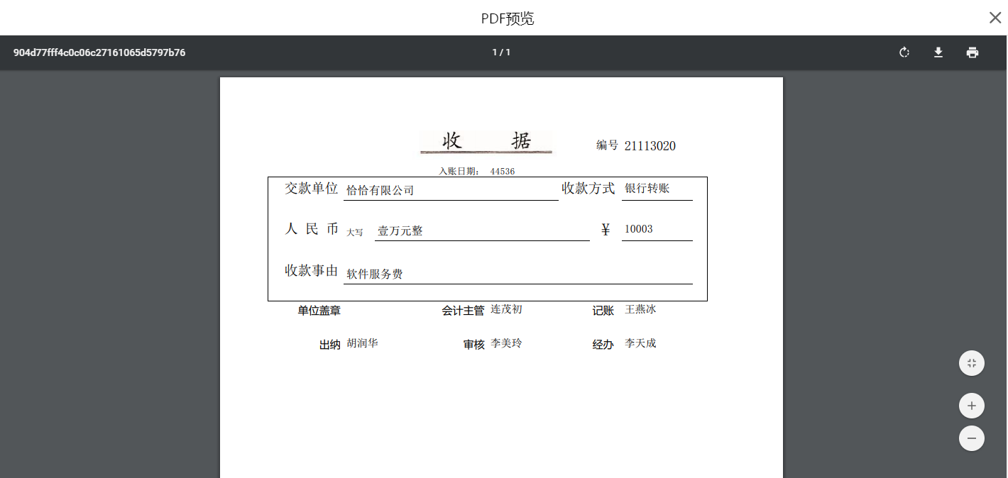 在提交成功的收据信息报表中,可以直接一键选择打印按钮,将自动匹配收据格式,确认无误后即可直接打印。