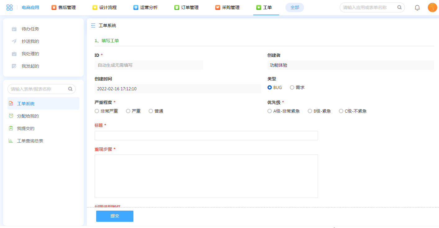 2.工单在线填写