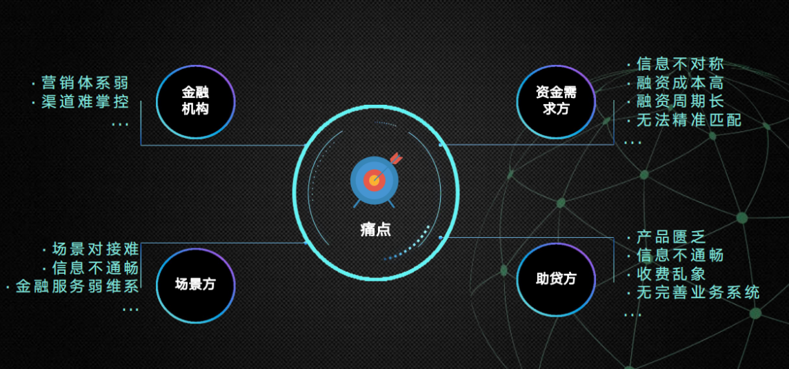 数科金融服务平台是基于“互联网、大数据、Al、云计算”等技术,促使“核心企业、助贷方、场景方、资金需求方与金融机构”紧密链接,实现各方有机结合,平台是集“智能营销”、“智能产品”、“智能风控”、“贷后管理”为一体的SAAS金融信息服务平台。