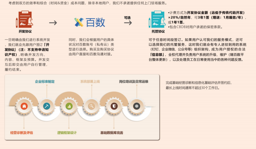 1.基于百数开发的引擎和行业数字模型,支持多业务类型、多工作场景并存式集成开发,提高企业与更多行业合作的可能性。