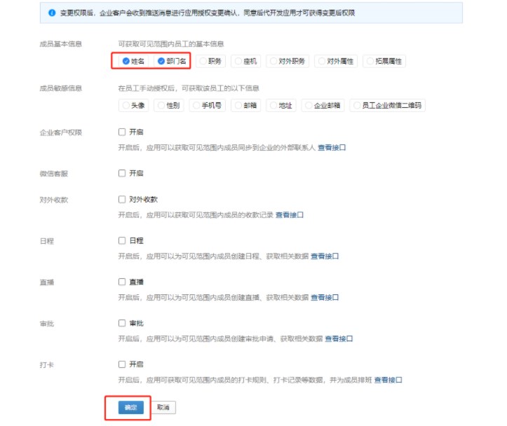 3) 企业客户管理员收到代开发应用权限变更消息,若企业同意权限则服务商所选择的自定义权限立即生效。