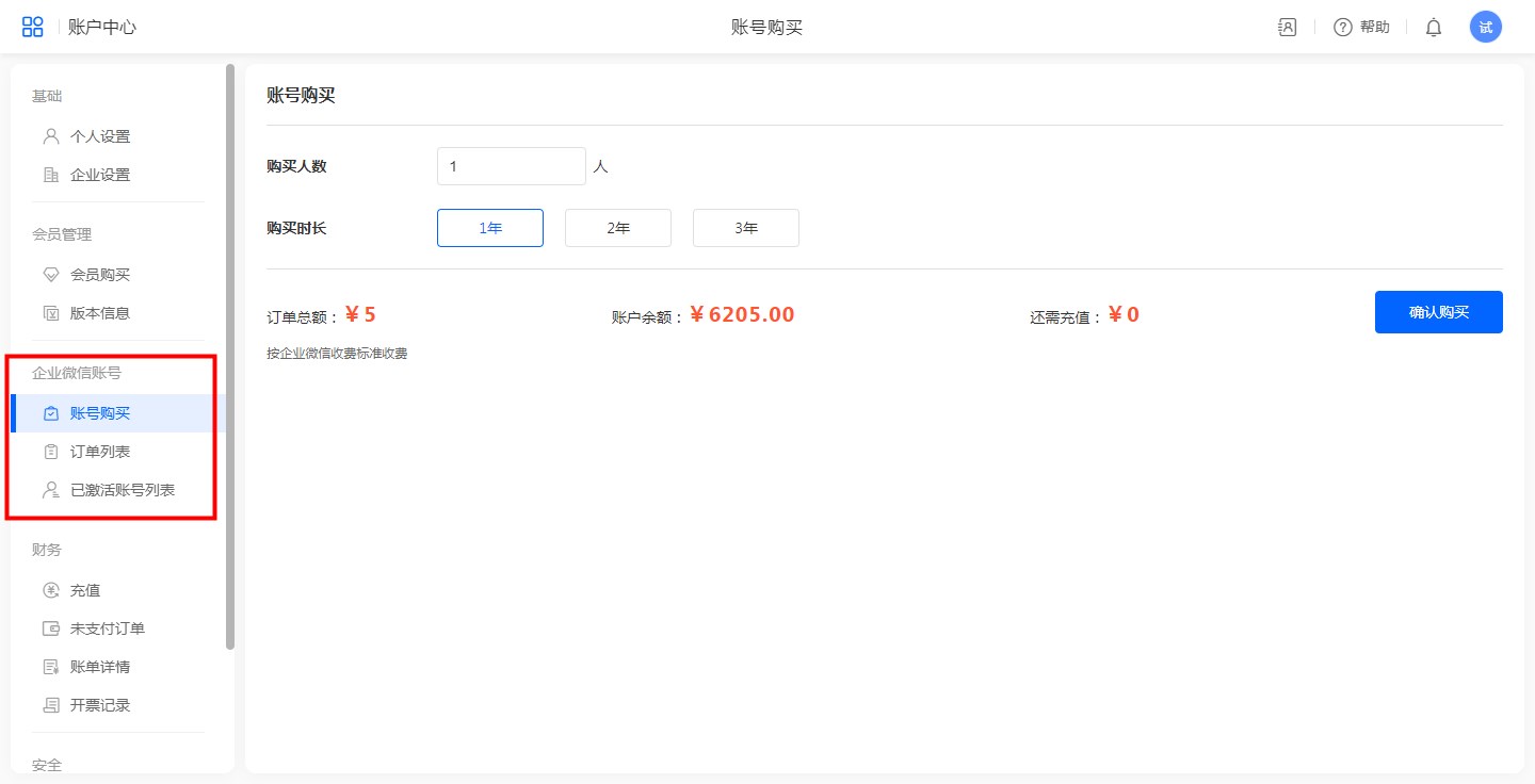 企业微信方调整收费模式,平台的企业微信团队需要购买企业微信账号后方可使用相关功能。