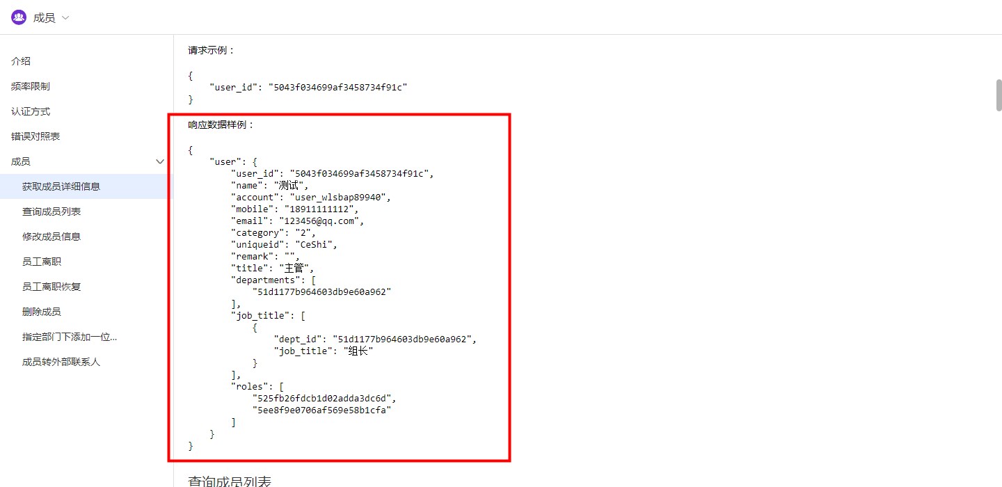 正常的接口都会给出返回的示例,我们可以在此处看到返回的数据结构: