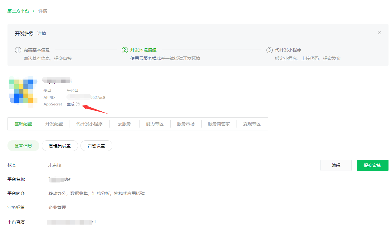 进入管理中心->第三方平台->找到刚才创建的第三方平台点击详情