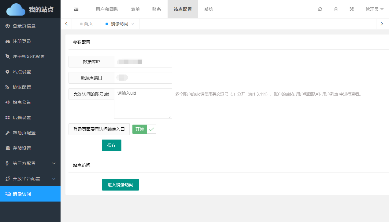 • 进入镜像访问:进入当前站点镜像访问模式