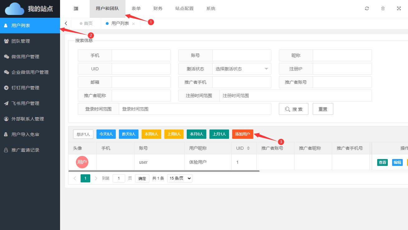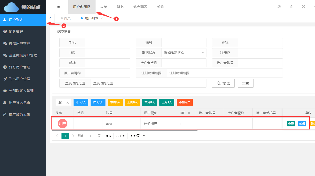 团队成员登录前台账号后会因为未分配足够的配置导致无法正常使用,所以使用前首先给团队创建者账号赠送配置。