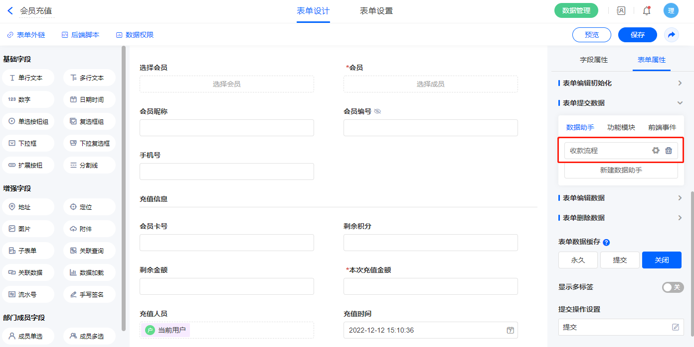 提交会员开卡表单之后,由数据助手更新该客户的会员卡信息至客户信息表单;