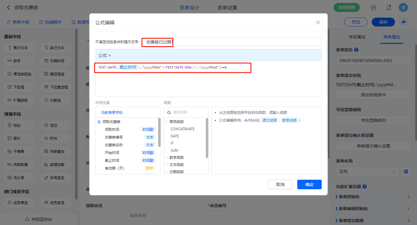 点击领取弹出领取优惠券表单,通过提交校验,让过期的优惠券不可领取;