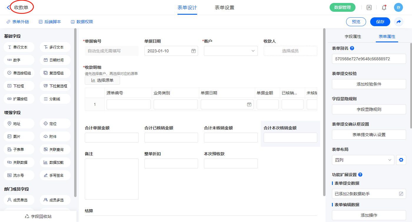 - 2.10、表单【其他收入单】字段及表单属性设置
