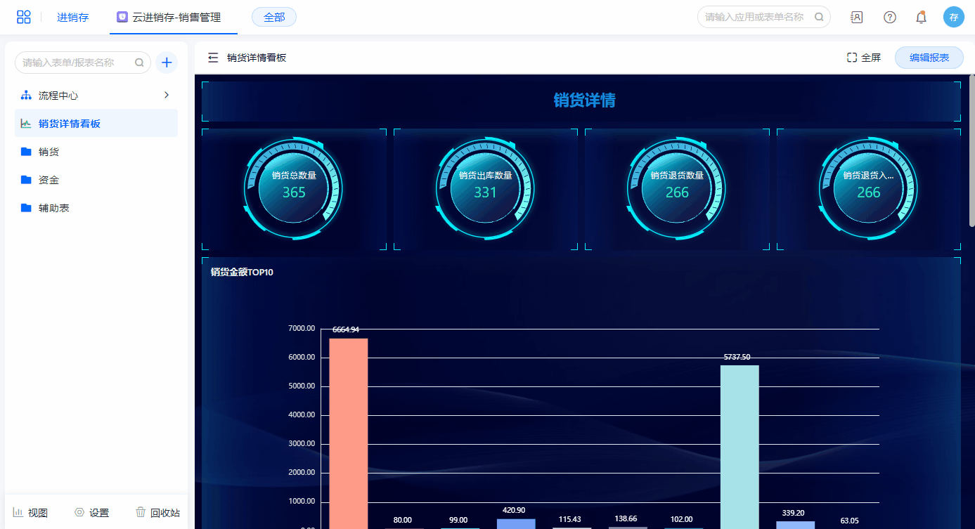 1)新增【以销定购看板】报表,用基础报表【数据表】展示数据源为表单【以销定购看板】的数据; 全部设置完成点击【保存】,选择【应用访问】进行查看效果;