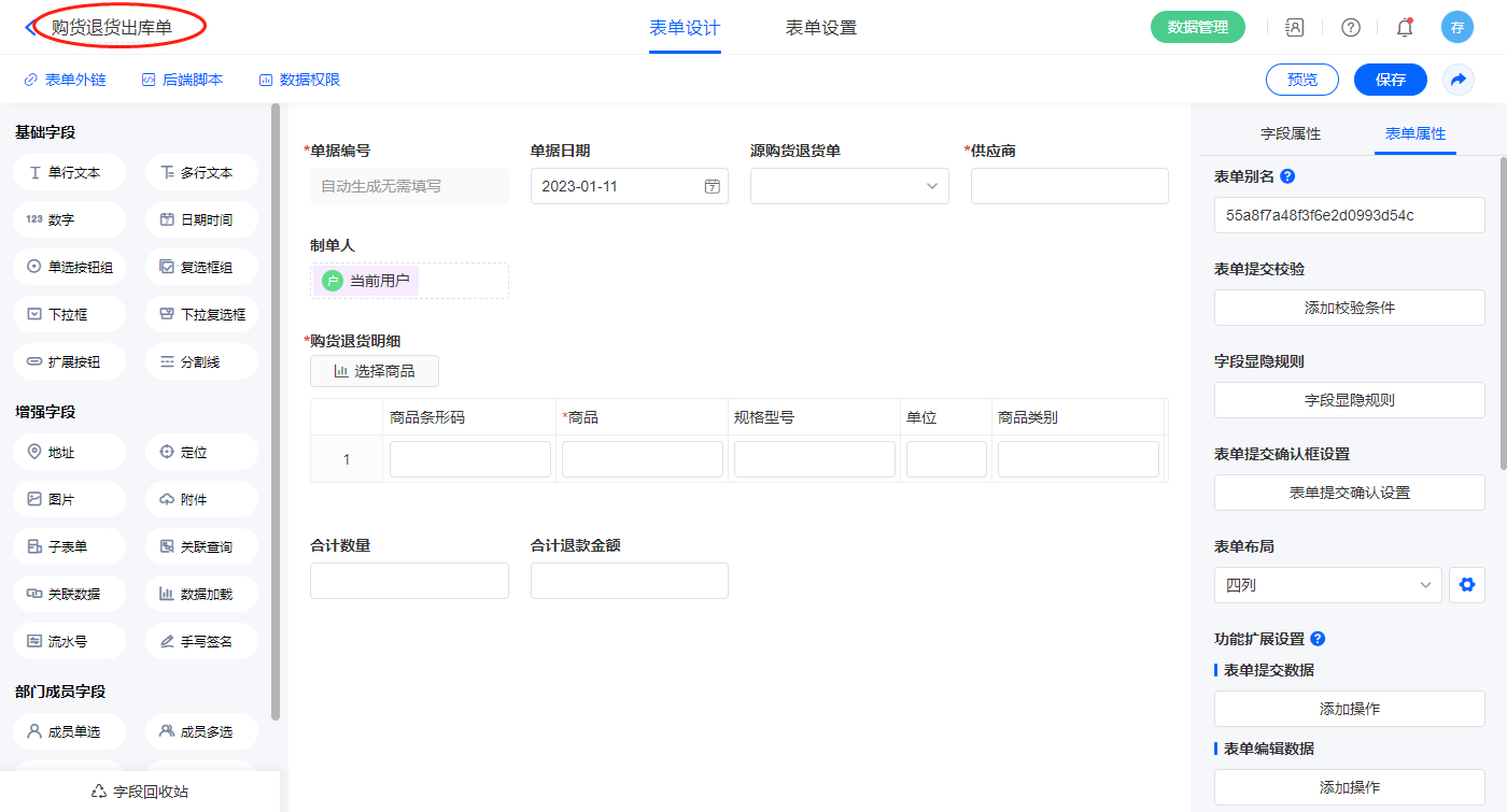 - 2.5、表单【购货退货出库单】字段及表单属性设置