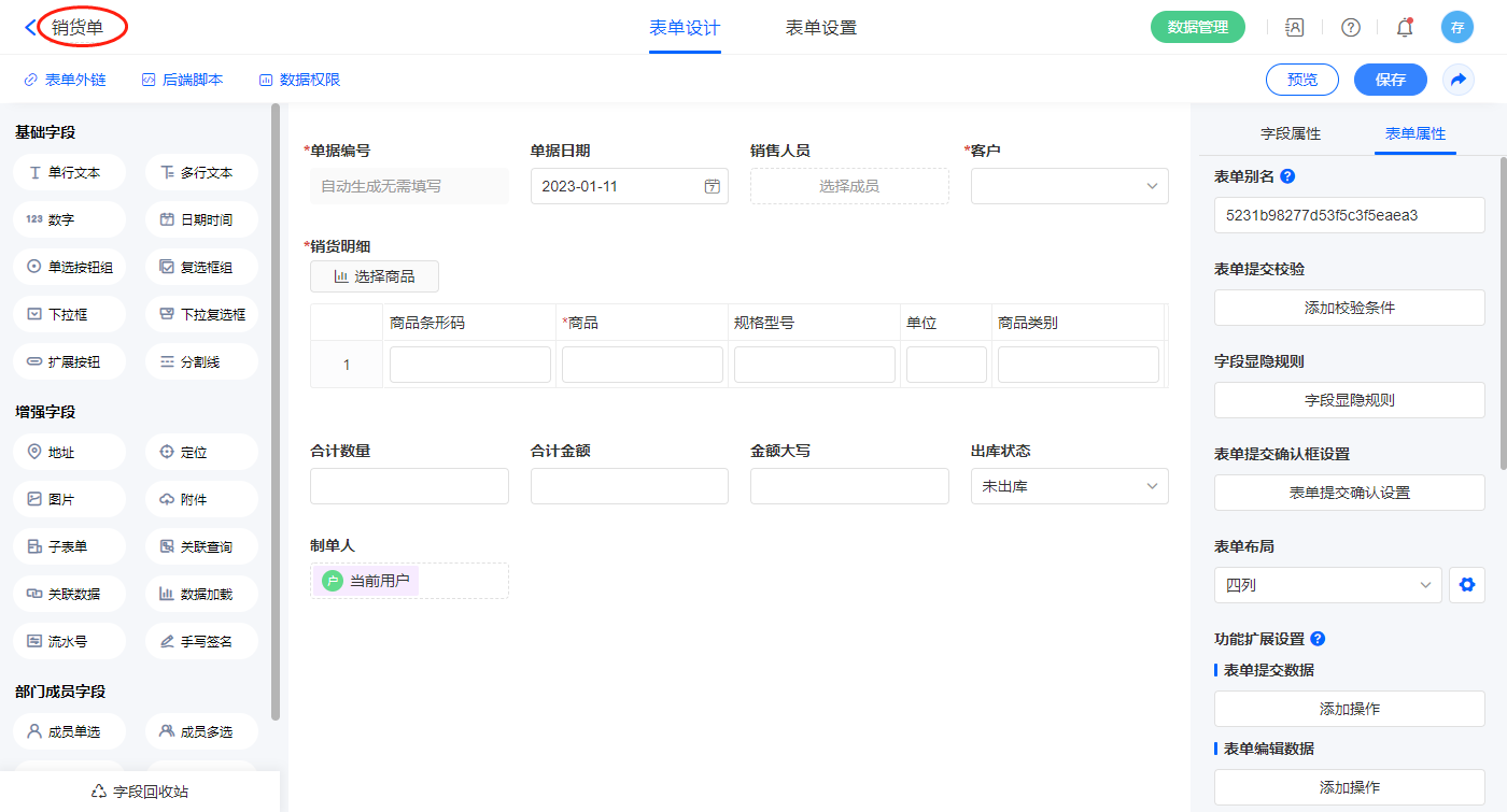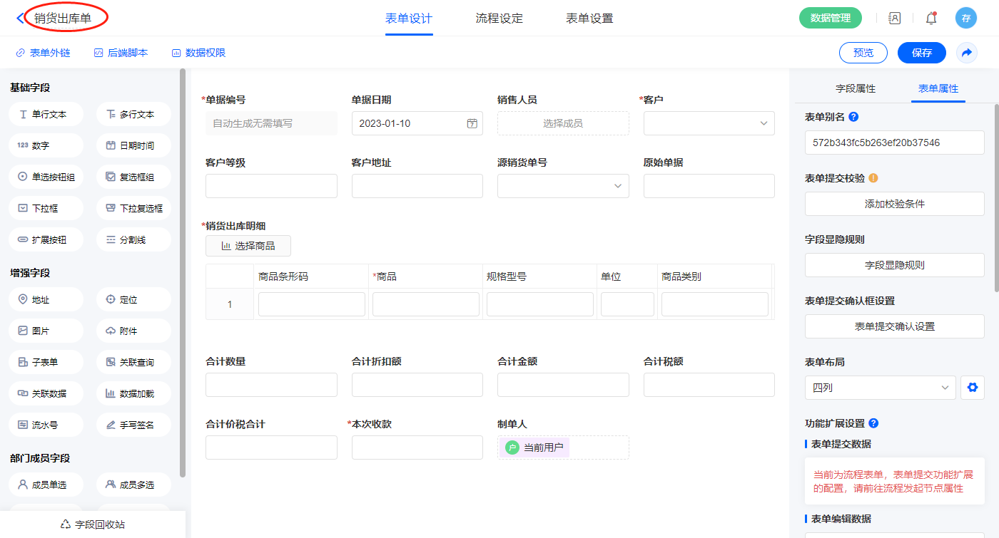 - 2.8、表单【销货出库单】字段及表单属性设置