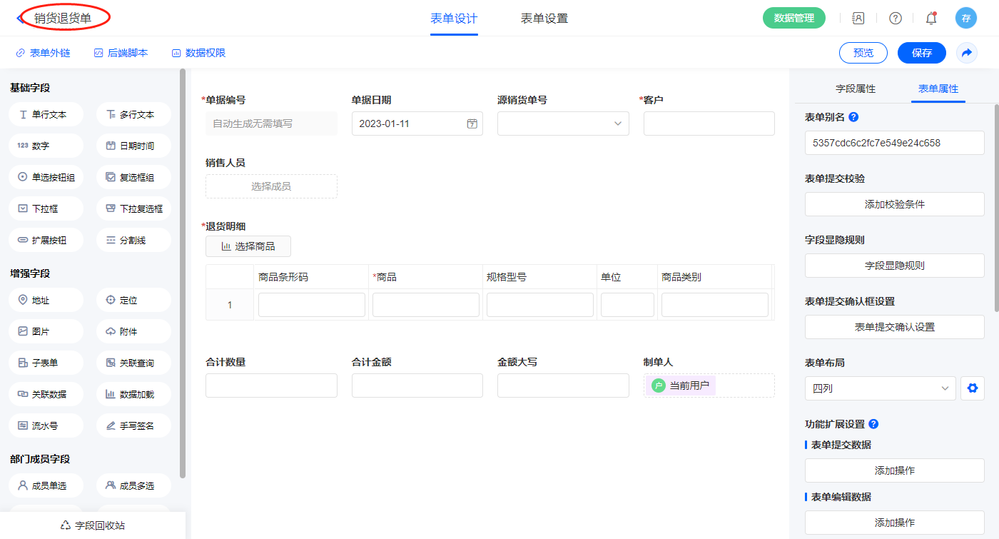 - 2.7、表单【销货退货单】字段及表单属性设置