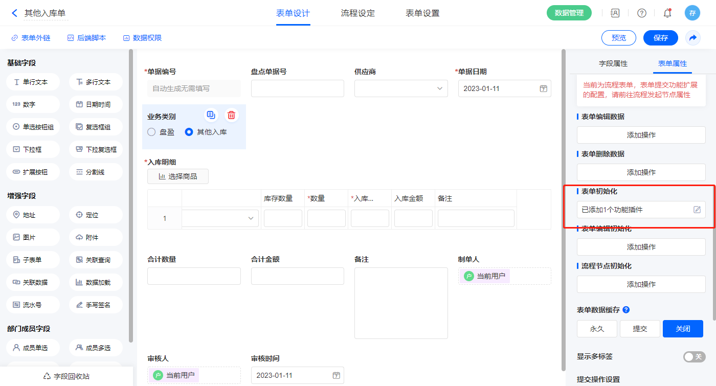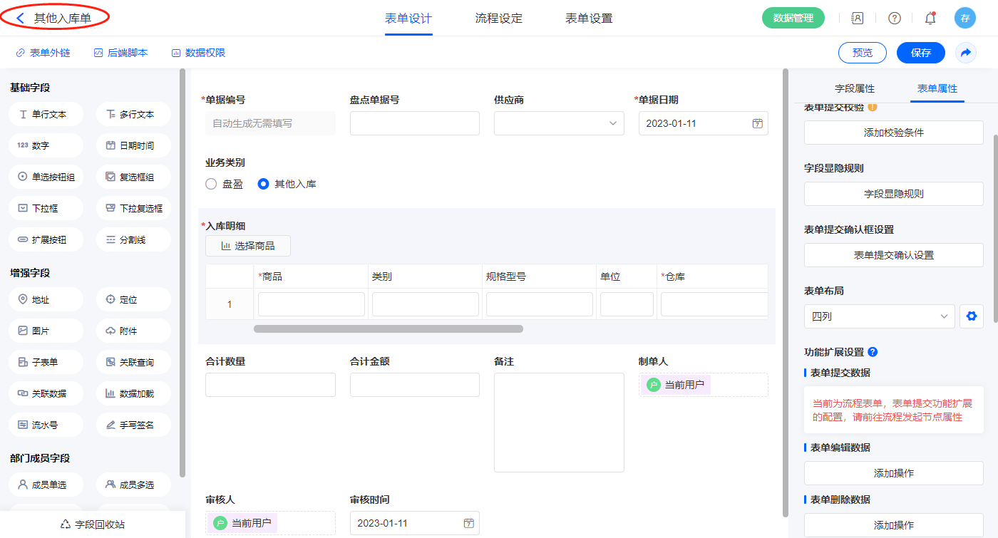 - 2.12、表单【其他入库单】字段及表单属性设置