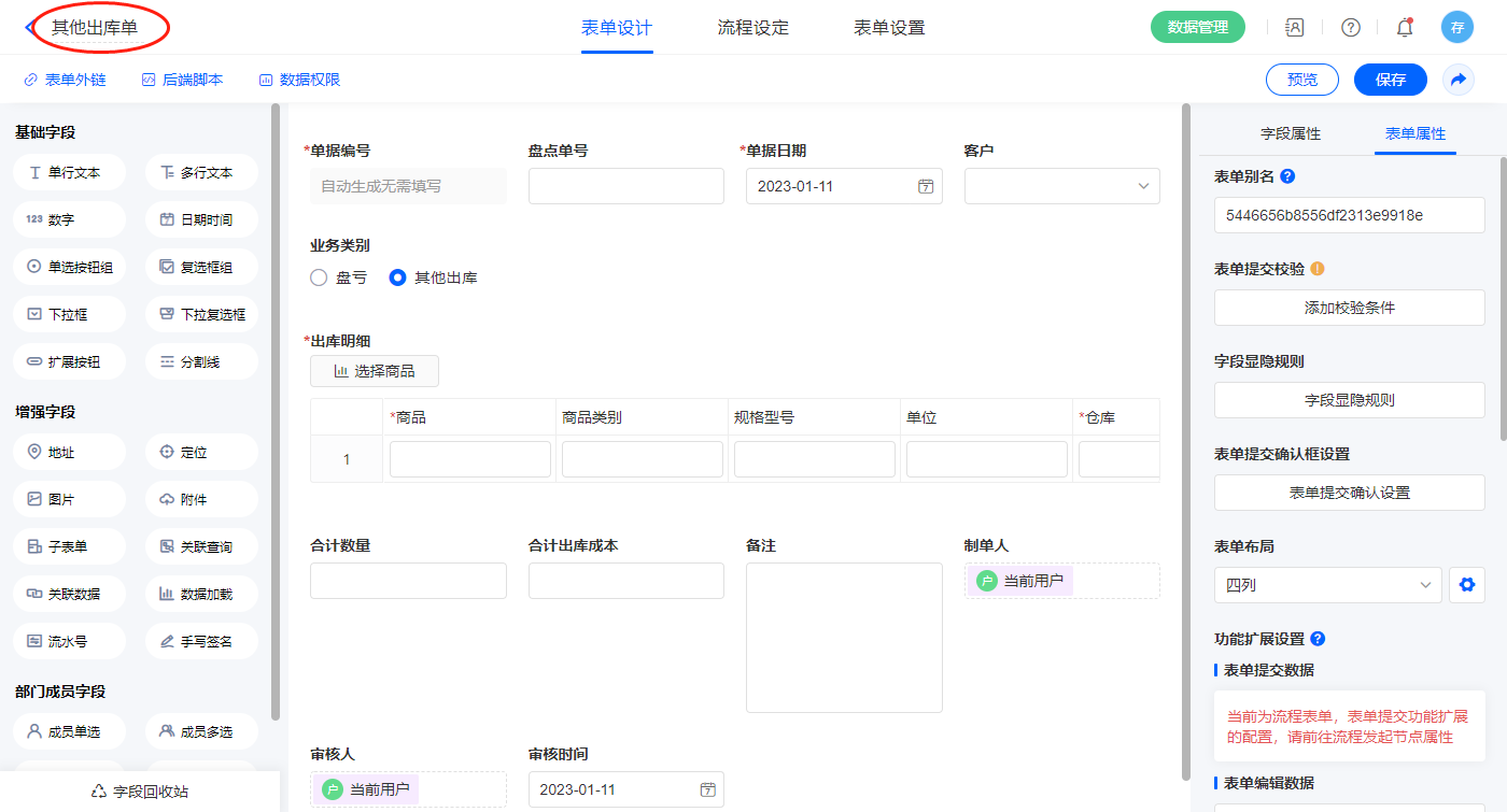 - 2.13、表单【其他出库单】字段及表单属性设置