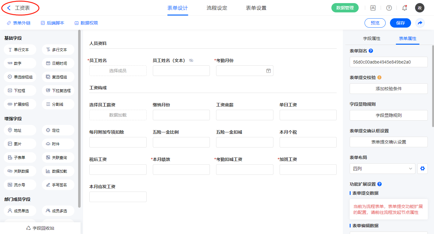 • 2.5、表单【薪资基础表】字段及表单属性设置