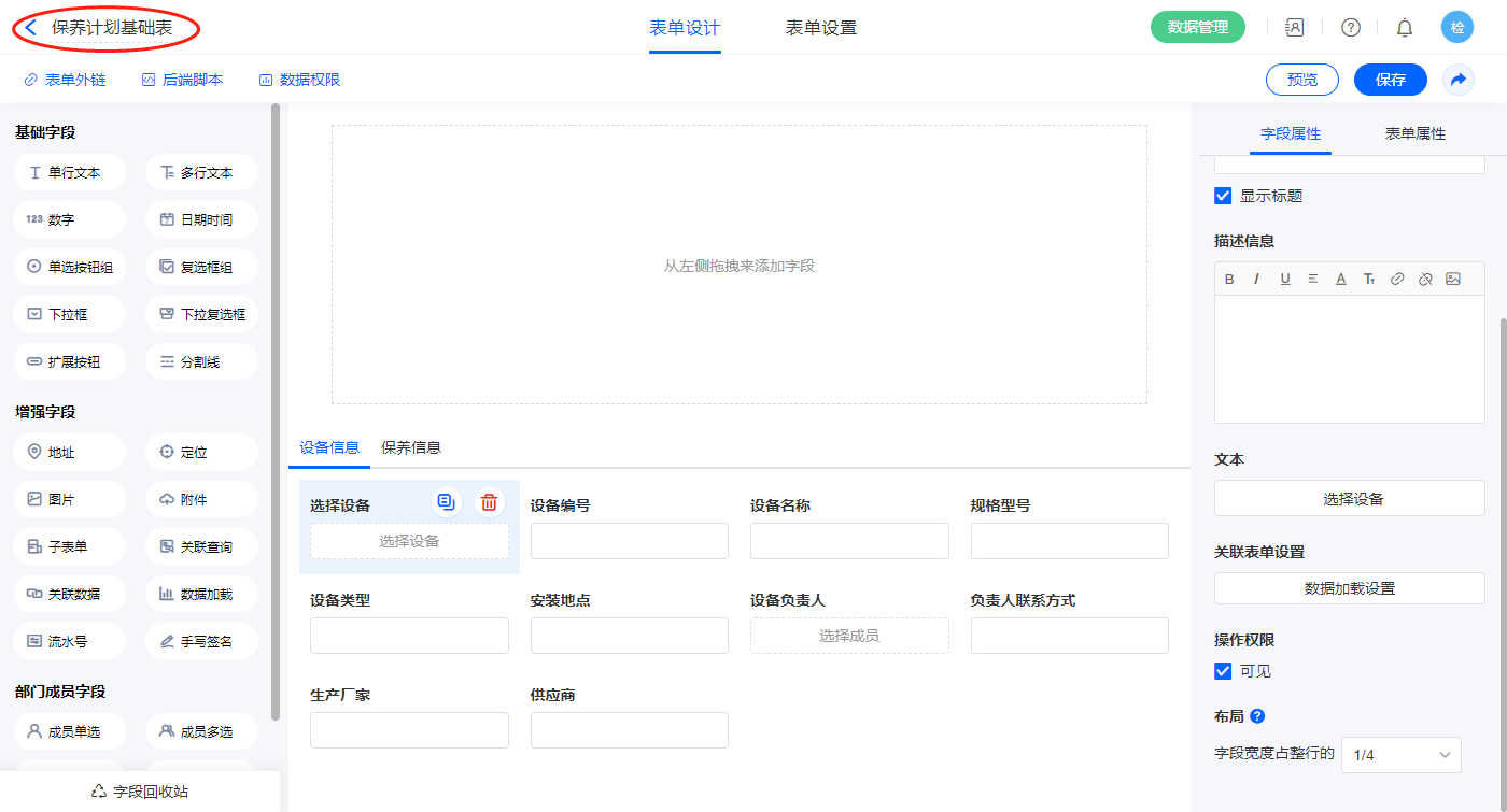 • 2.4、表单【保养计划基础表】字段及表单属性设置