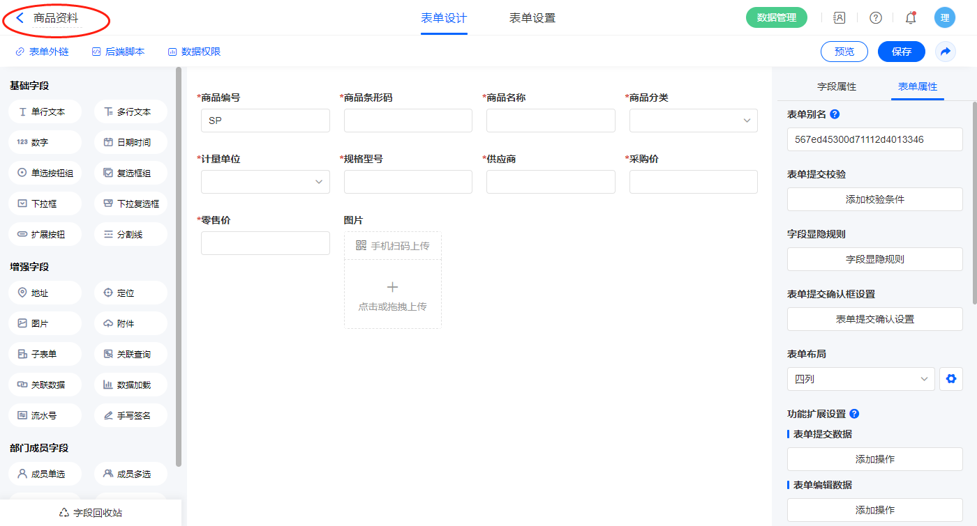 【商品总价】字段,设置默认值为公式编辑,如图设置公式;