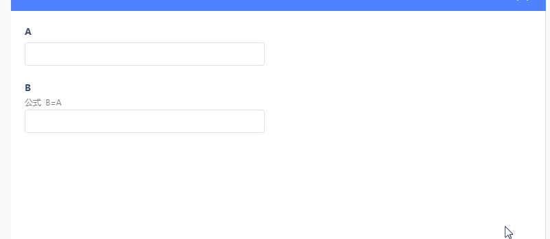 示例:字段B设置公式(B=A),手动输入A触发字段B的公式。