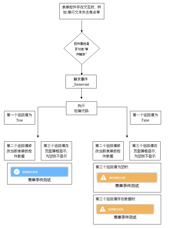 『表单控件触发事件』入口函数,启用后对表单控件操作时触发(例如“单行文本”失去焦点,“下拉框”选择一个选项时),可以修改或设置当前表单字段值与属性。