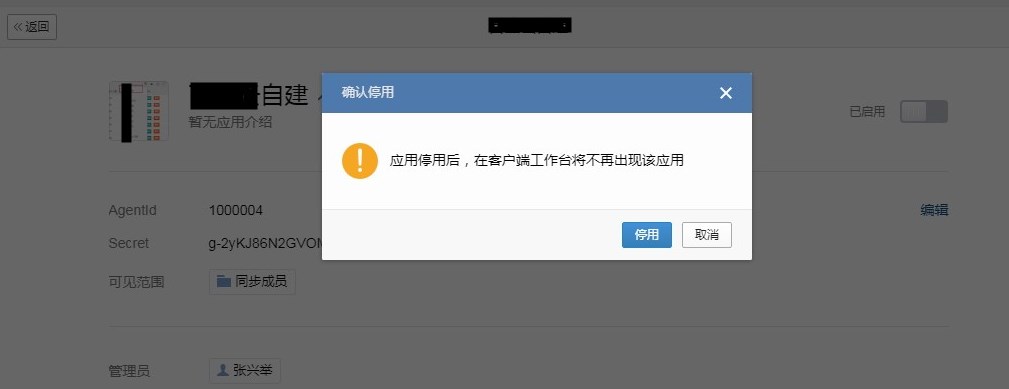 2.如果不需要成员看到这个辅助应用,可以点击上图右上角的按钮将应用停用👇。