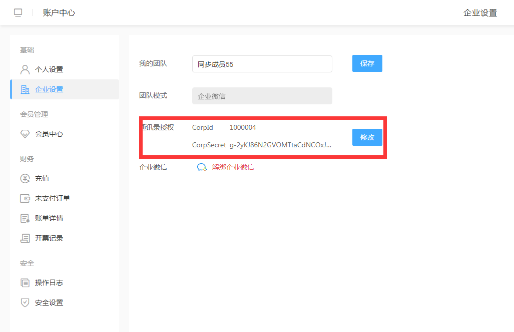 绑定后,团队名称不再同步,需要在账户中心 >> 企业设置 中手动修改。