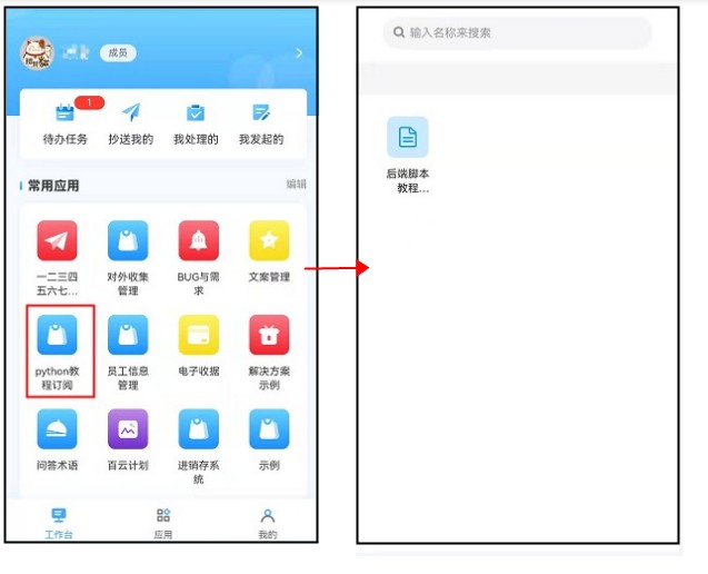 对于已经安装好的应用,除了在工作台内通过快捷访问打开,还可在页面下方点击【应用】后找到需要使用的应用。