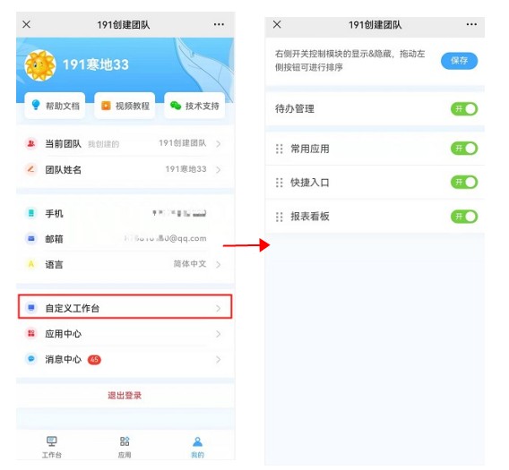 对于工作台内要展示的内容,还可以通过自定义工作台进行设置。