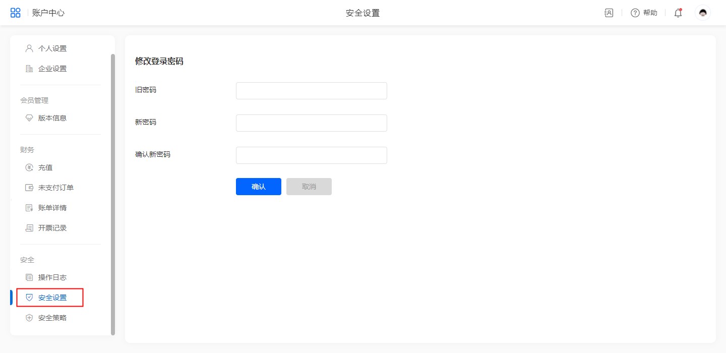 安全设置中可修改当前账号的密码。