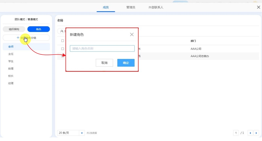 为满足公司内跨部门协作的需求,平台在组织架构之外新增角色功能。