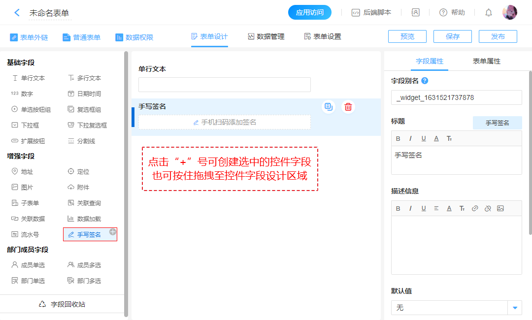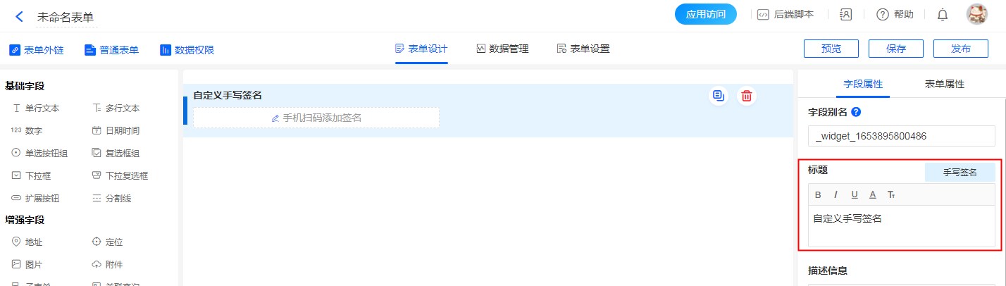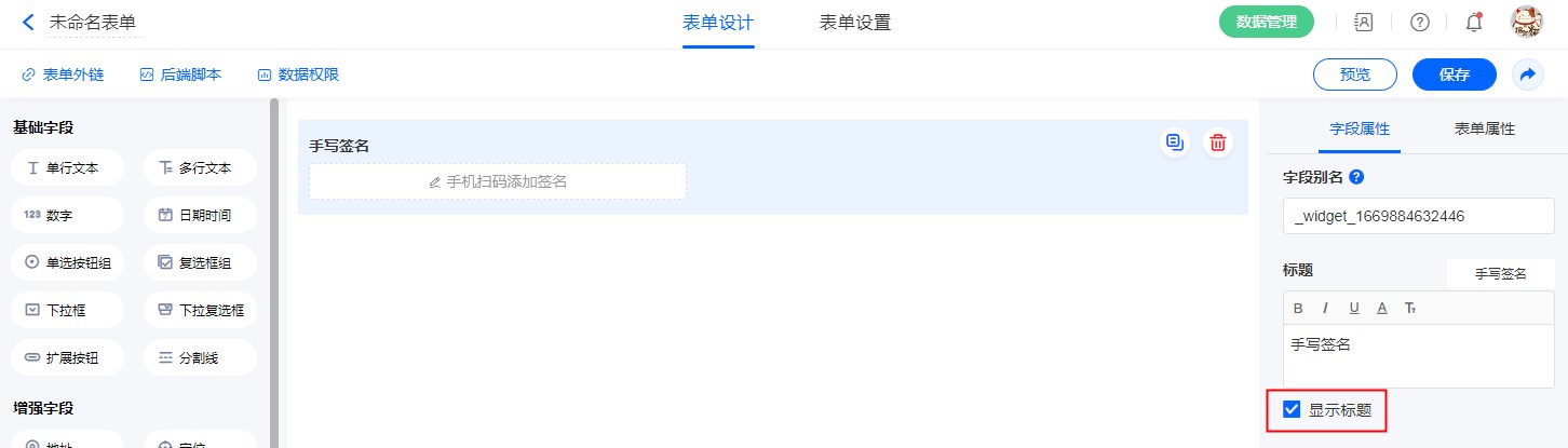 “字段别名”用于后端开发,默认为系统自动生成的随机字符串,可修改。