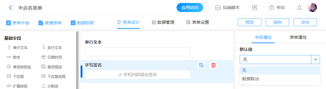 数据联动 即手写签名控件的值是根据某个字段从另一个表单中调用过来的。