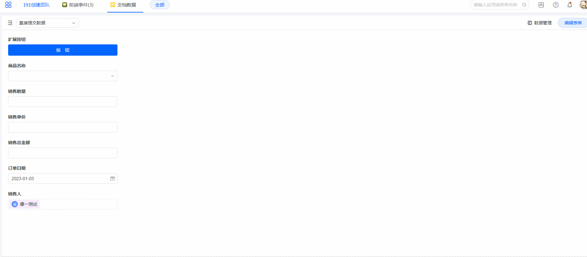 当前表单提交或编辑数据时,点击按钮,弹出表单,编辑弹出表单并提交后,关闭弹出表单,发现弹出表单的字段值自动回写到当前表单的对应字段中。