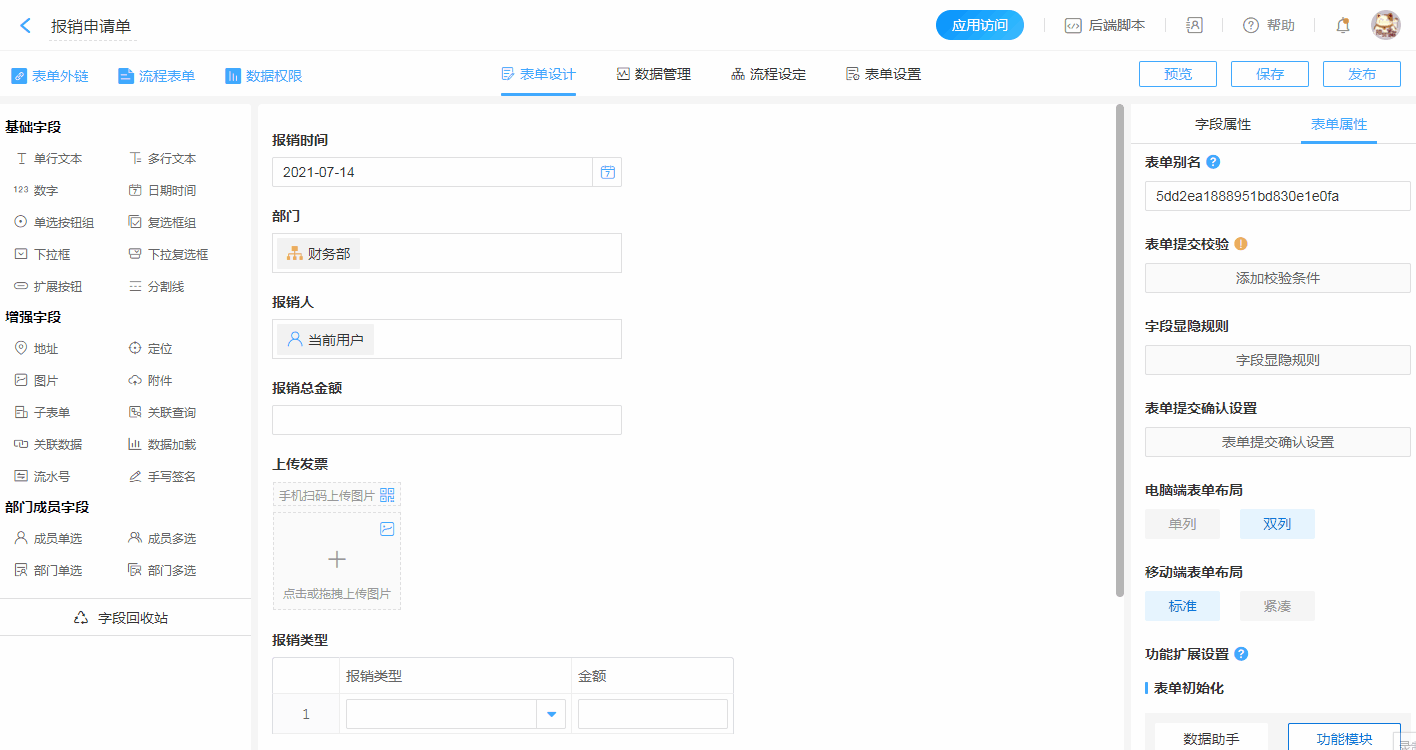 - 流程表单的数据权限详情见流程表单数据权限。