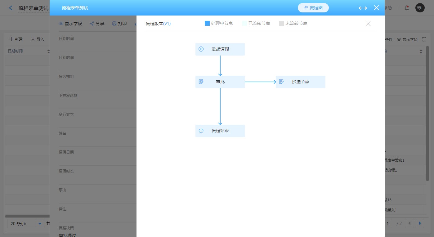 流程图可以看到该流程表单的流程流转示意图。