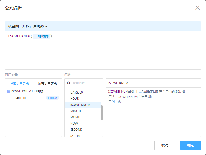 ISOWEEKNUM(data) 的返回周数结果与 WEEKNUM(data,2) 的结果一致,都是从周一开始计算的。