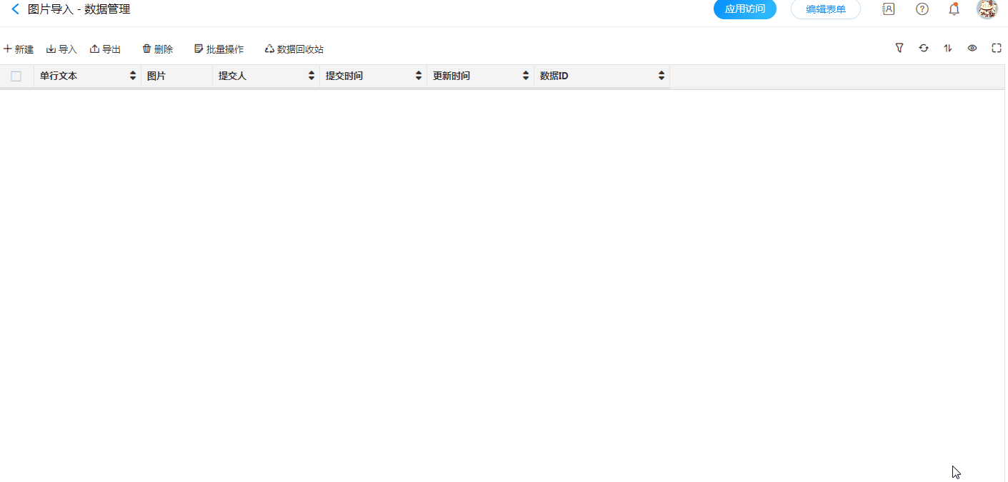• 图片字段(包括子表单中的图片字段)支持导入图片。