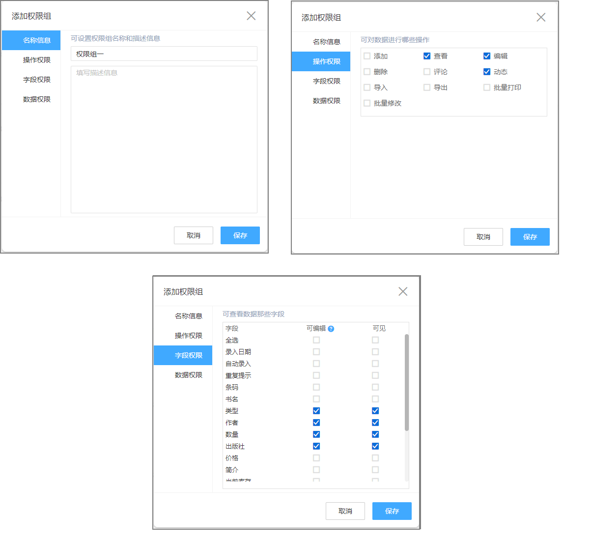 1、【新建权限组一】——【配置权限组一】——【权限组一添加成员】